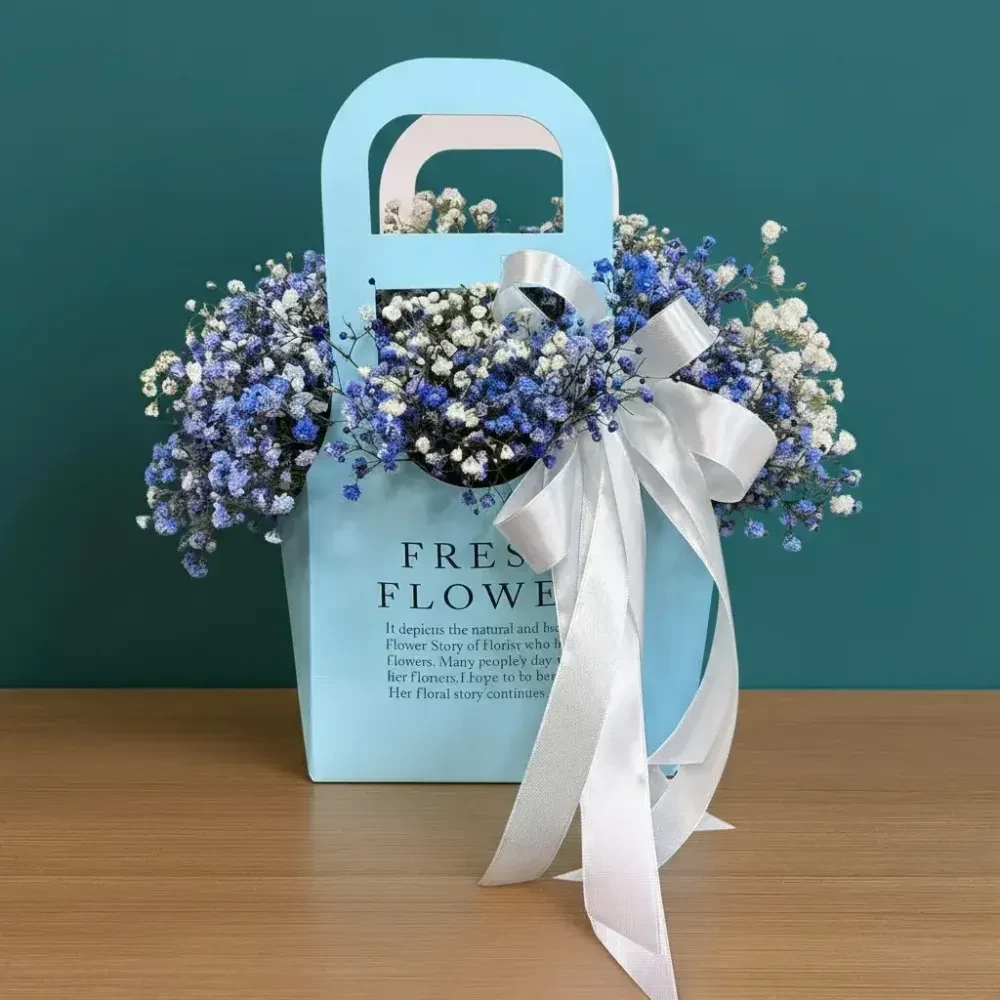 Воздушная гипсофила, собранная в стильной сумочке, — это идеальный подарок, который говорит о самых нежных чувствах. Символ чистоты, вечной любви и лёгкости. Такой букет не завянет и будет долго напоминать о вашем внимании.