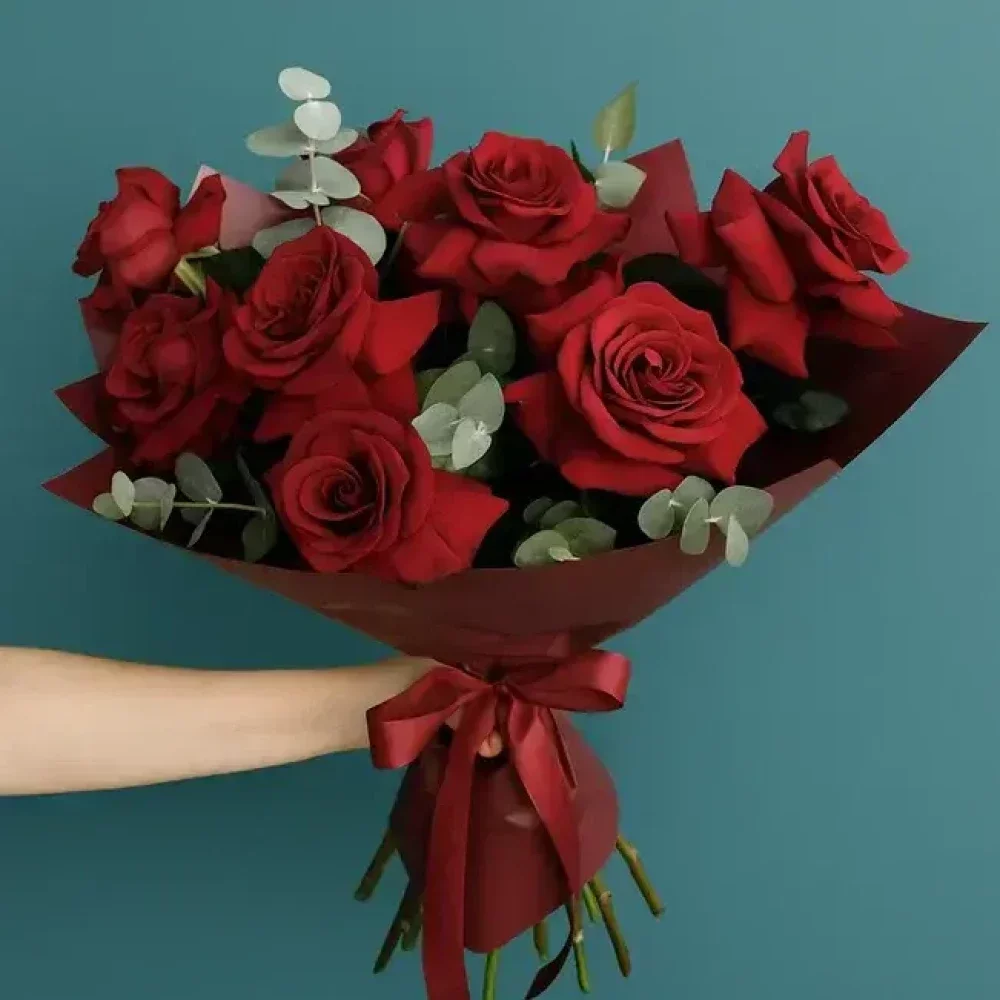 Букет из французских красных роз 9 шт.